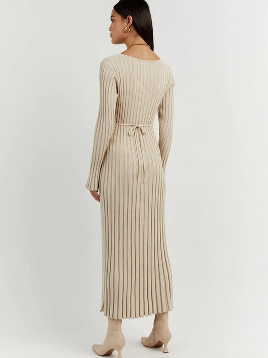 Lotte - Elegante Beige Vestido Maxi de Manga Larga – Estilo Refinado y Elegancia Atemporal